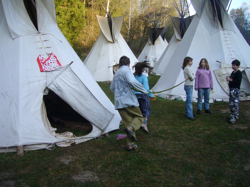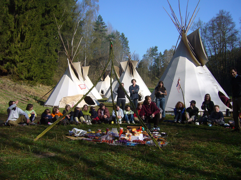Tradiční společné táboření pod týpí.